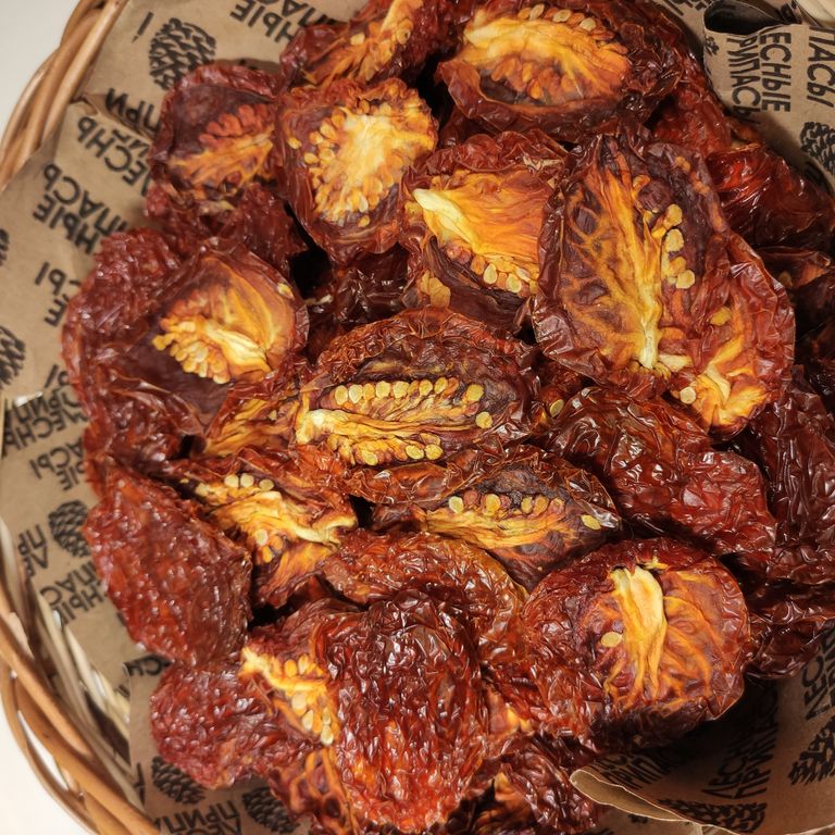 Вяленые томаты имеют среднюю калорийность, в связи с этим их можно употреблять в период диеты. Главное – знать меру. Вяленые томаты рекомендуется употреблять в пищу при авитаминозе, недостатке в организме микроэлементов, сниженном иммунитете.