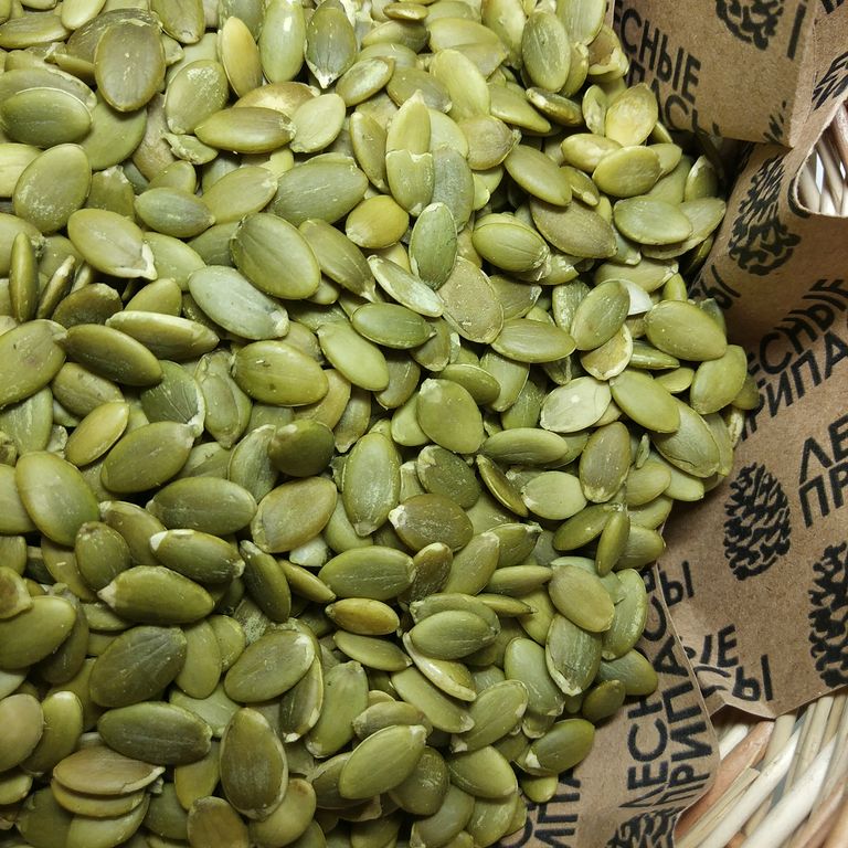 Тыквенные семечки содержатся от 32 до 52% пищевого масла и необходимый человеку запас цинка. Всего горсть семечек тыквы улучшает настроение. Фосфор и цинк, улучшают работу кровеносной системы и головного мозга. Мужчинам тыквенные семечки полезны именно потому, что в них много цинка. Цинк предупреждает воспаления и возникновение рака простаты, поэтому каждому мужчине желательно употреблять хотя бы горсть тыквенныех семечек в день