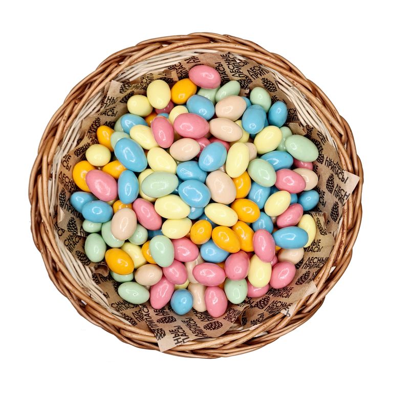 Состав: шоколадная глазурь (сахар, какао-масло, какао-порошок эквивалент какао-масла, эмульгаторы: лецетин, адмул-вол, ароматизатор ванилин идентичный натуральному), орехи миндаль, глазирователь, лак, ароматизаторы апельсин, лимон, манго, персик и барбарис, краситель натуральный.