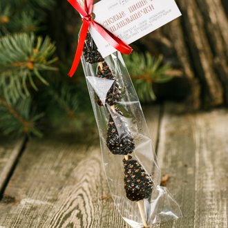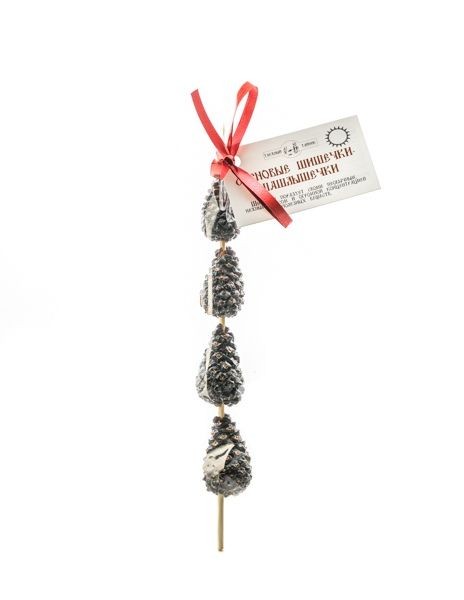 Цена за 1 шпажку. На каждую деревянную палочку (шпажку) нанизаны по 3-4 шишки разного размера.