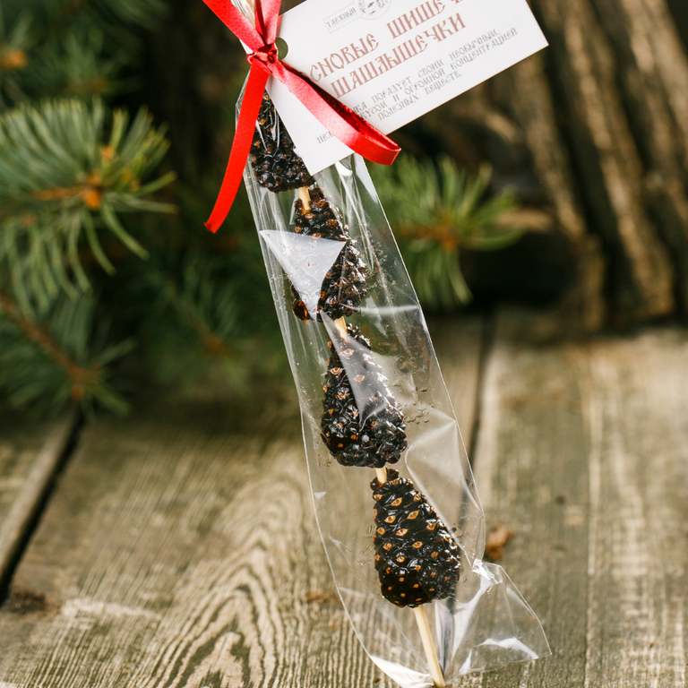 На вкус очень необычно! Особенно для тех, кто вообще ни разу в жизни не ел сосновую шишку. А вот для тех, кто жевал шишечку из варенья, вкус покажется очень знакомым. По сути ту же сваренную шишку нанизывают на шпажку и - вуаля! - получается вот такой шишечный шашлычок!