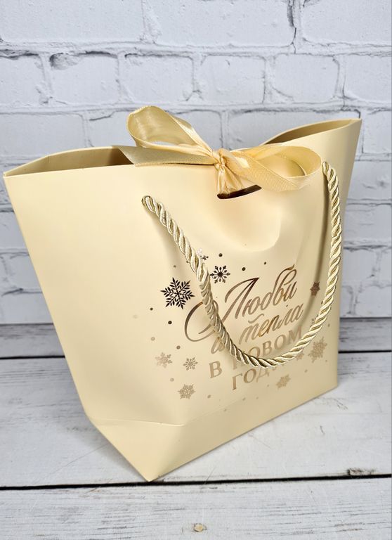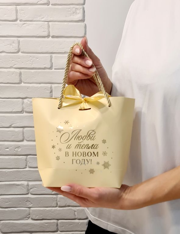 Новогодний набор в светло желтом пакете с орешками и цукатами.