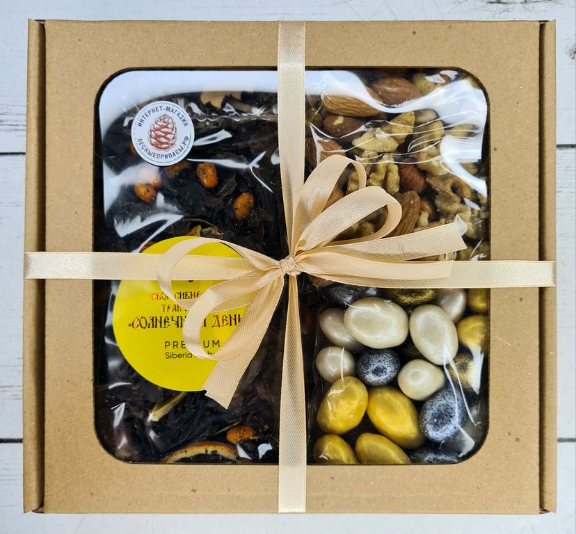 Сбор сибирских трав и ягод “Солнечный день”, 50г. Состав: иван-чай ферментированный, бадан, апельсин чипсы, ягоды облепихи сублимированной, бадьян.