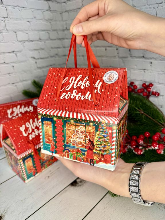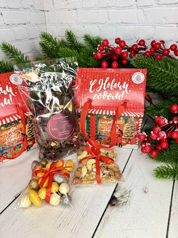 Новогодний набор в коробке в форме елочки, 6 видов орехов и цукатов.